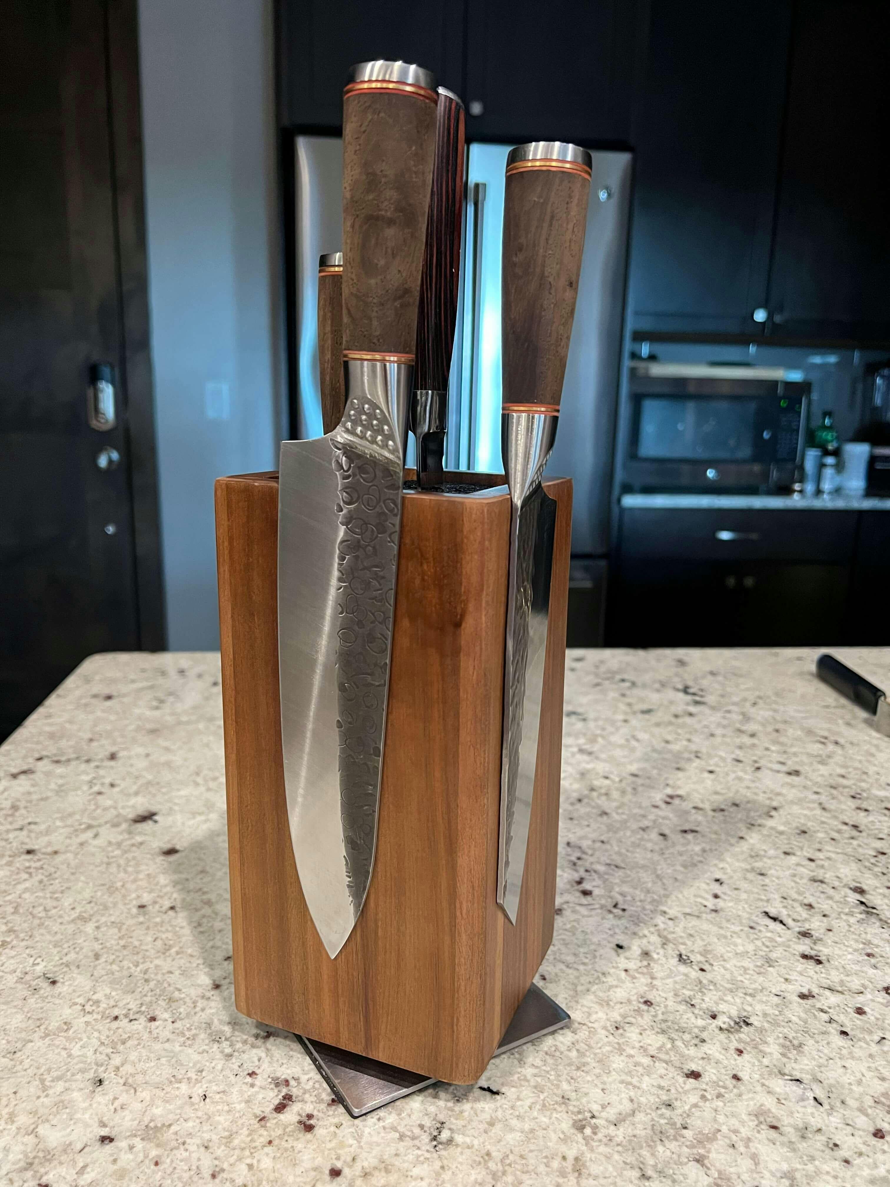 Experience a clutter-free kitchen and quick knife access with just a spin!